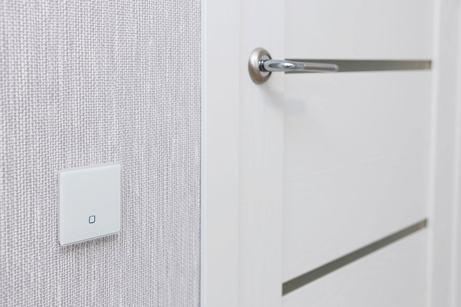 Входная группа представлена прочными металлическими дверьми, которые обеспечивают звукоизоляцию и герметичность, блокируя проникновение посторонних запахов. Межкомнатные двери – светлые царговые со стеклянными вставками. Благодаря многослойному декоративному покрытию они обладают влагостойкостью и устойчивостью к механическим повреждениям.